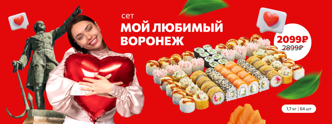 Сет Мой любимый Воронеж, 64 родных кусочков всего за 2099 рублей по акции:Наслаждаемся любимым сетом по акции.